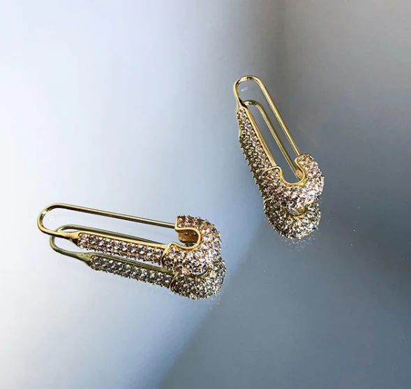 Introducing the Sparkling Safety Pin Inspired Earrings, a chic fusion of fashion-forward flair and timeless elegance. Drawing inspiration from the iconic safety pin, these earrings are a stylish addition to any jewelry collection, combining practicality with a touch of glamour. Designed to dazzle and catch the light, they bring a trendy yet classic edge to your look.